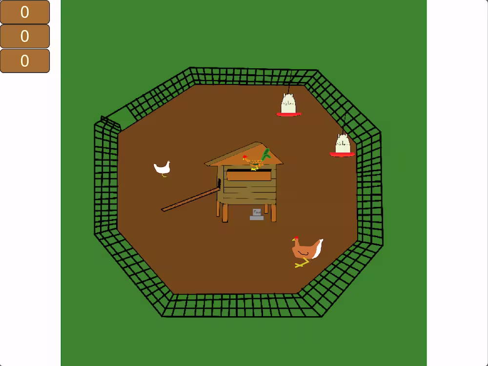 I wrote this game to contain multiple scenes that out can walk through in 2D, both as a platformer and in traversal style. The movement is complex logic with all the features you would expect from a video game including arrow keys, jump with space, and attack/interact with the Z key. Throughout the game you will hear ambient sound that I recorded with my own chickens based on where you go.
